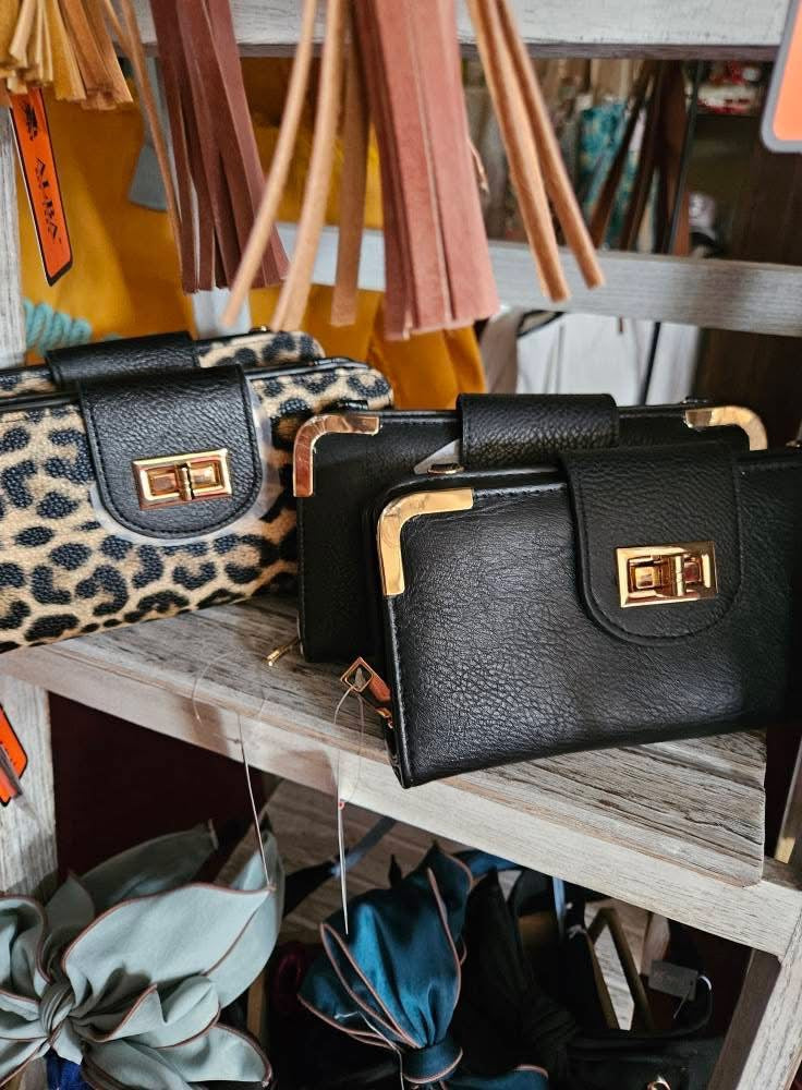 Turn Lock Crossbody Wallet