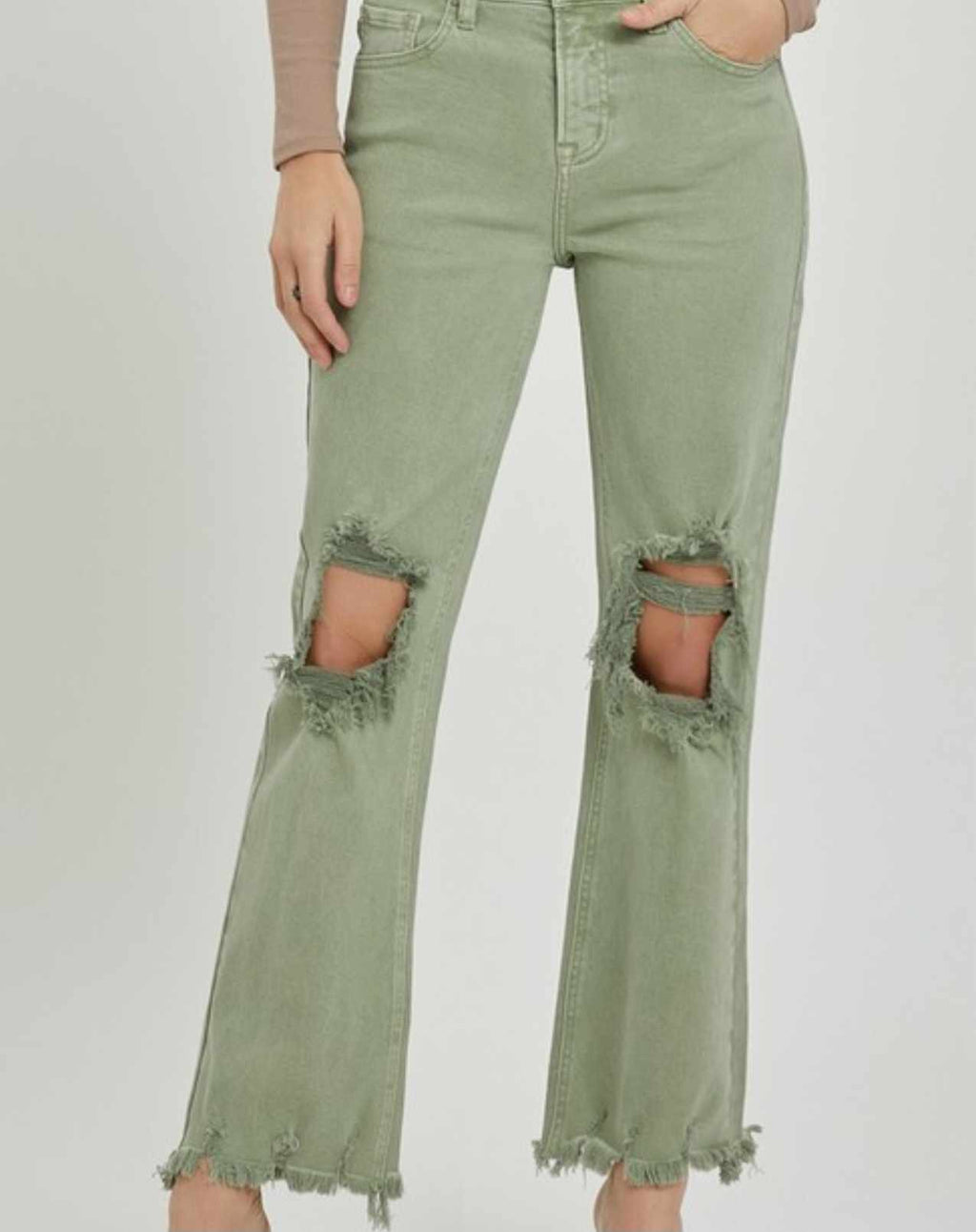 Olive Risen HR Distressed Straight Jeans